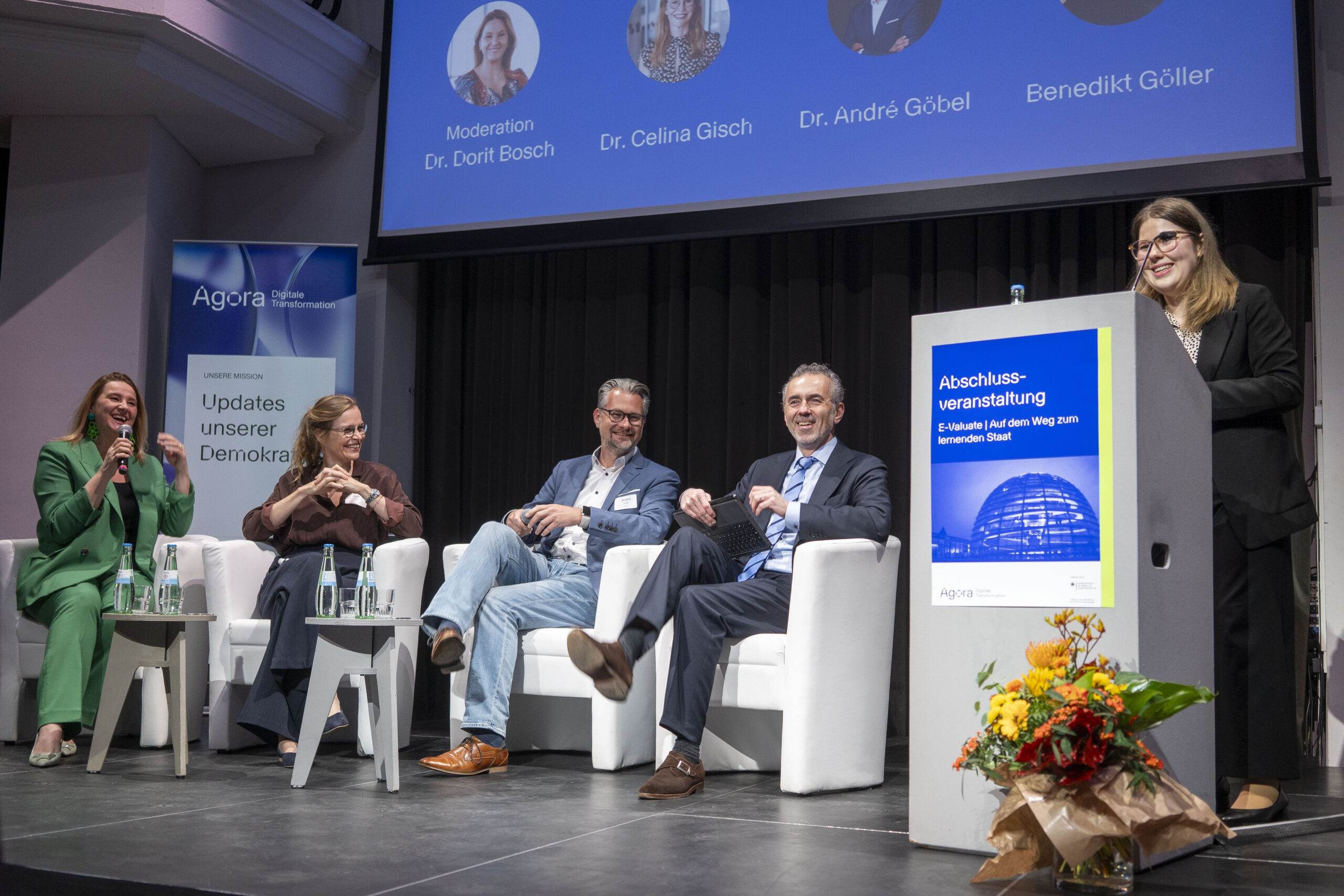 Am 6. November durften wir als Agora Digital Transformation gemeinsam mit Projektpartner:innen, Stakeholder:innen, Unterstützer:innen und vielen Interessierten die Abschlussveranstaltung des Forschungsprojekts E-Valuate feiern – und vor allem diskutieren: über Ergebnisse, über Wirkungsorientierung und über den Staat von morgen. Schauplatz war das silent green in Berlin-Wedding, das sich an diesem Abend in eine Bühne für Ideen, Erfahrungen und Pläne verwandelte.